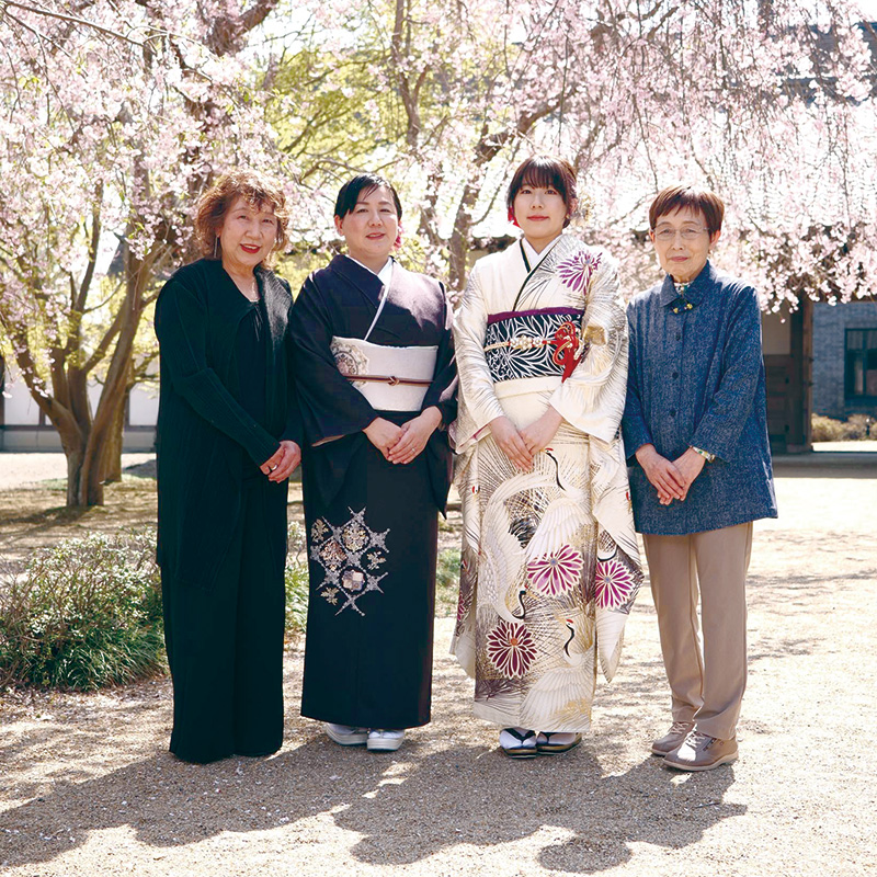「栗田美術館は良い場所で、ここで撮れて嬉しいですね」と皆さん口を揃え、嬉しそう。お嬢様のひと目ぼれで選んだ振袖姿に「他にはあまりないキレイな振袖に出会えて良かったです」とお母様。「素敵ですね。本人も『私の振袖が一番』と喜んでいました」とおばあちゃまです。