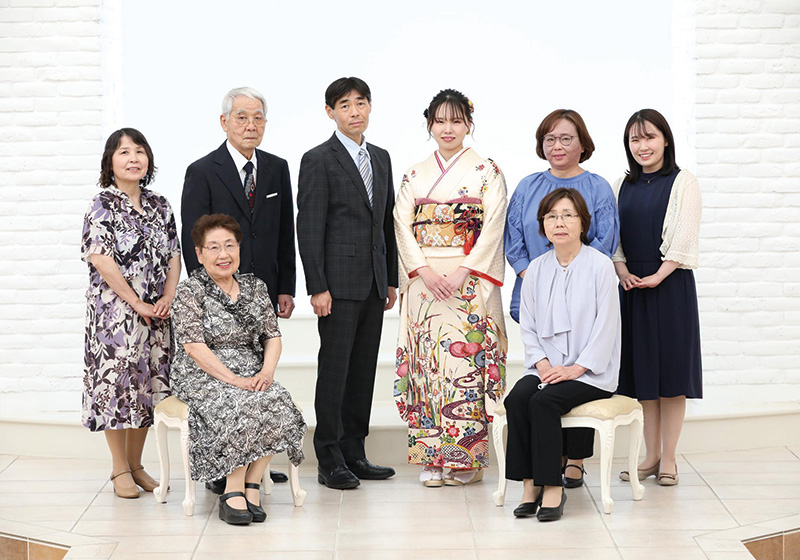 「振袖姿は新鮮で、二十歳になる実感がわきました」とお嬢様。「大人になったなと思いました。前撮りのために髪の毛を伸ばし、髪飾りも本人が選んで希望の髪型になりました。カラーコンタクトも入れて、自分らしい姿にこだわり楽しんでいて良かったです」とお母様です。