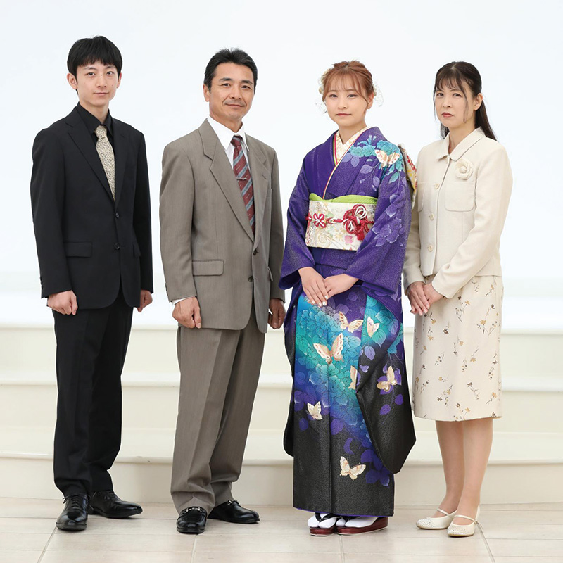 「私の振袖を今風にアレンジして着てくれて嬉しかったです。振袖に合わせカラーリングした髪色や、祖母がお祝いでプレゼントしてくれた髪飾りを合わせた髪型もオシャレのポイントになりました。様々な場所で撮っていただき、私も主人も感動の一日を過ごさせていただきました」とお母様です。