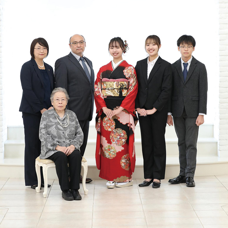 母の振袖に合わせて、帯と小物を両親と相談しながら決めていきました。振袖姿になると、母が着た振袖を、こうして着こなせる年齢になり、大人になったんだなと思い嬉しかったです。撮影ではみなさんが盛り上げてくれて、緊張せずにとても楽しく過ごせました」とお嬢様です。