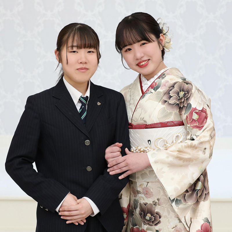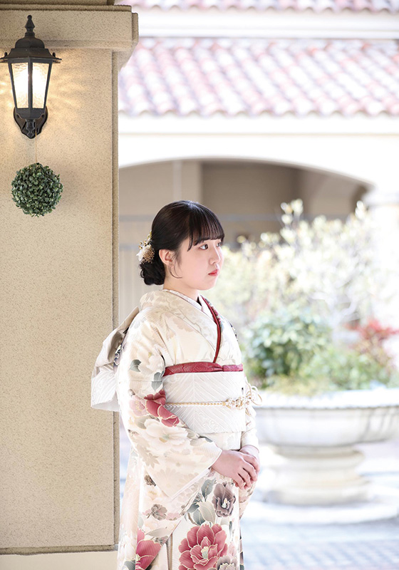 「この振袖は花柄の雰囲気が気に入って選び、母からも『いい感じだね』と言われました。振袖を着ると、二十歳になったんだなという気持ちになりました。撮影は緊張したけれど楽しかったです」とお嬢様。お母様と妹さんと共に和やかなひとときを過ごされました。