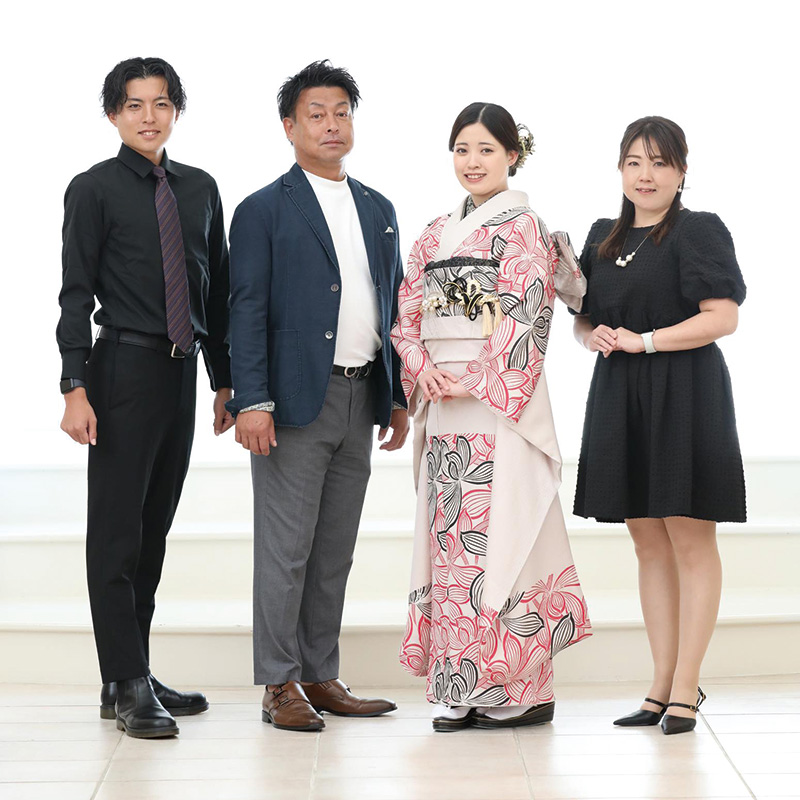「長女のときに用意した振袖に、『シックな感じにしよう』と話しながら新しく小物を合わせていきました。とてもキレイな振袖姿になり、似合っていました。前撮りは少し緊張していたようですが楽しんでいて良かったです。演出も素晴らしく驚きました」とお母様です。